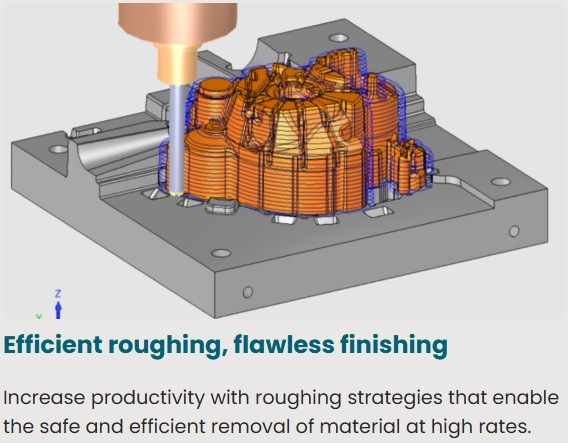 Generate safe, accurate, and efficient toolpath Cimatron CAM provides powerful tools for the efficient programming of 2.5-axis to 5-axis CNC machine tools, including specialized strategies for machining molds, plates, dies, and discrete parts.